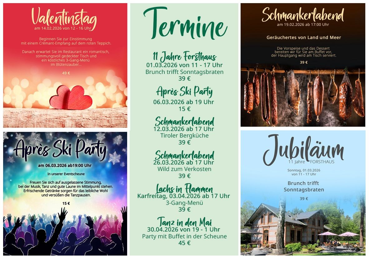 Nur knapp eine halbe Stunde nordwestlich von Berlin erwartet Sie das FORSTHAUS am Schloss Sommerswalde, idyllisch im Schwanter Forst gelegen. Feiern, tagen und genießen im Grünen - fernab vom städtischen Trubel bietet das FORSTHAUS mit Restaurant, Eventscheune, Remise, Ferienwohnungen und großem Garten hier einzigartige Möglichkeiten.