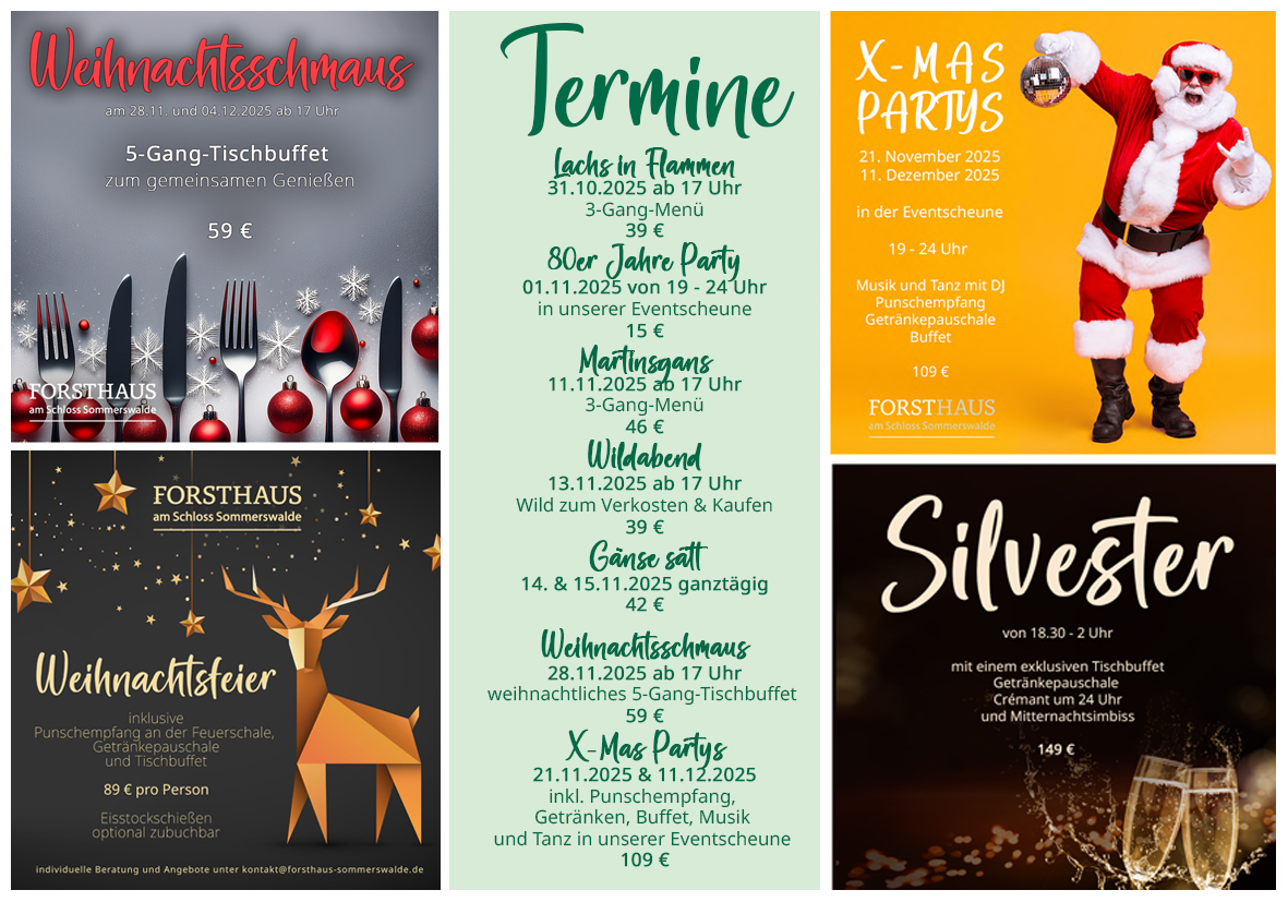 Nur knapp eine halbe Stunde nordwestlich von Berlin erwartet Sie das FORSTHAUS am Schloss Sommerswalde, idyllisch im Schwanter Forst gelegen. Feiern, tagen und genießen im Grünen - fernab vom städtischen Trubel bietet das FORSTHAUS mit Restaurant, Eventscheune, Remise, Ferienwohnungen und großem Garten hier einzigartige Möglichkeiten.